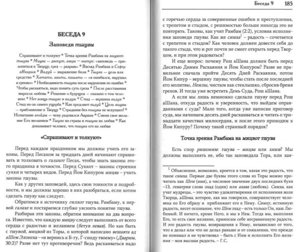 Спрашивают и толкуют * Точка зрения Рамбама на мицвот тшува * Мицва — двекут, авера — нитук: «заповедь — прилепиться к Творцу, грех — разрыв» * Взгляд Рамбана и Сефер аИкарим * Видуй — выражение боли * Тшува — цель или средство * Хатати, авити, пашати — «я ошибался, нарушал, грешил» * Необходимость тшувы после нарушения по ошибке * Чтобы раскаяться, надо понять суть греха * После расставания выросла любовь * Решение о будущем — сказано о том человеке * Нет конца тшуве и видую * Стыд — вершина видуя * Стыд из-за самого ущерба * Как продляют видуй * Цель мицвы — приближение к Творцу * Страдания без тшувы не искупают! * Испытание акейды — чему радовался Авраам * Смени свое желание Его желанием * Тшува из страха и тшува из любви * Как доказывает человек, что тшува его из любви